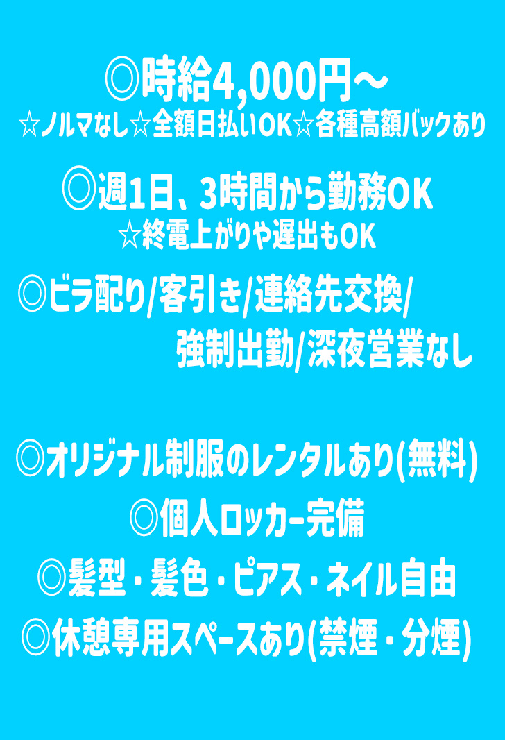 連絡先交換、ビラ配りなど面倒な業務は一切ありません!